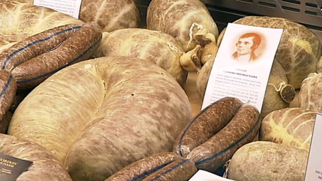 For the uninitiated readers among you, Burns Nights are annual dinners held in commemoration of the much beloved Scots nationalist poet, where gatherers recite Burns’ “Address to a Haggis” before feasting on the object of his veneration: the “Great chieftain o’ the puddin-race!” Or in other words, a sheep’s stomach stuffed with sheep hearts, lungs, and other sundry offal parts, mixed with oats, onions, and spices. For some reason it has never appealed.