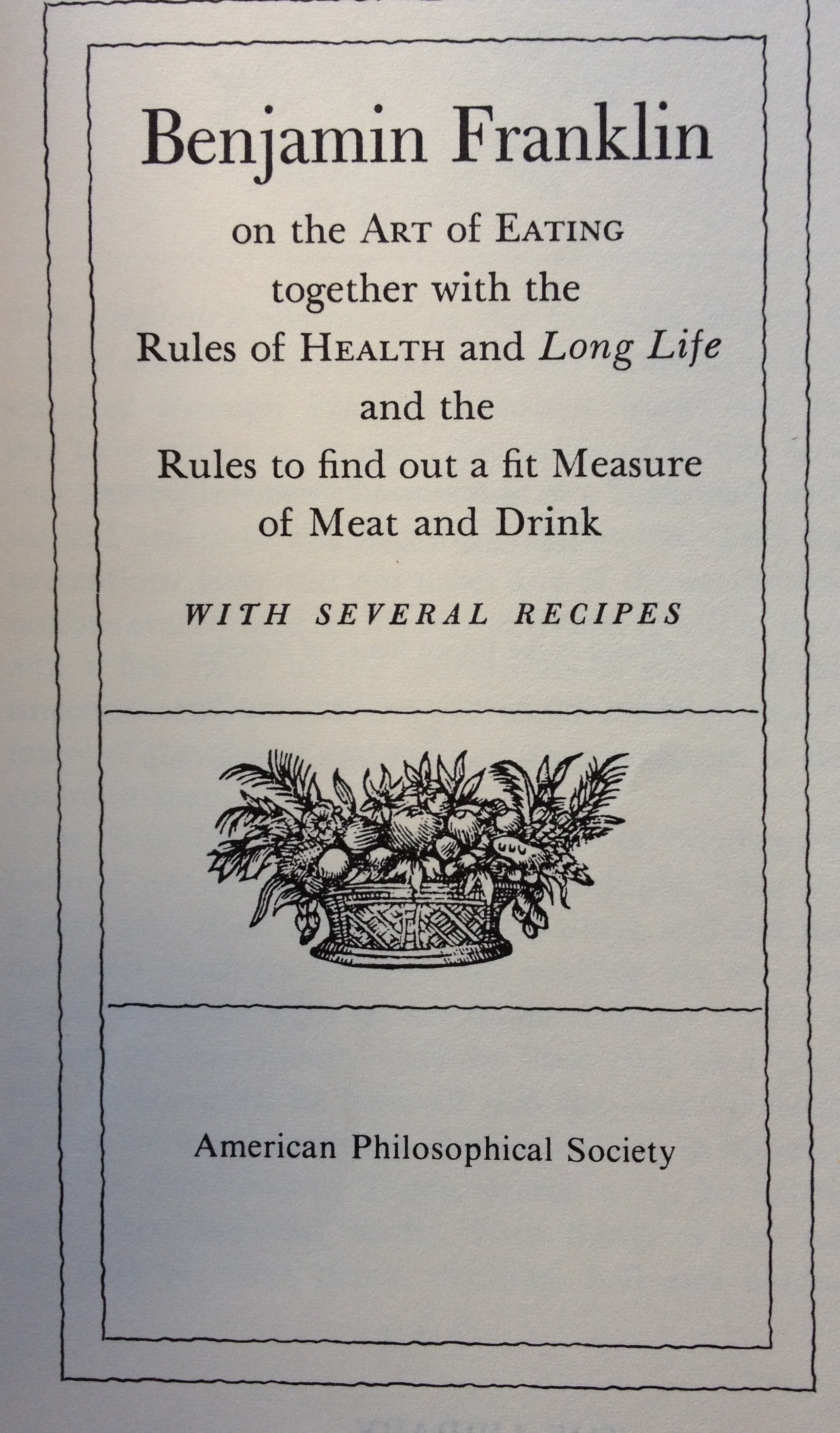 If you want to try Benjamin Franklin’s recipe for corn bread you can find it in the appendix to Gilbert Chinard’s wonderful 1958 essay “Benjamin Franklin on the Art of Eating.” This little pamphlet, printed by the American Philosophical Society, contains a number of recipes found among Franklin’s papers, few of which could be described as dietetic, the maize bread aside. Franklin’s recipe for roasted pig – a rarity in an age of boiled meats! – pays great attention to producing a delicious crackling (a word I can’t type without salivating). His oyster sauce is heavy on the cream. And his puff pastry calls for about a pound of butter. Nuff said.